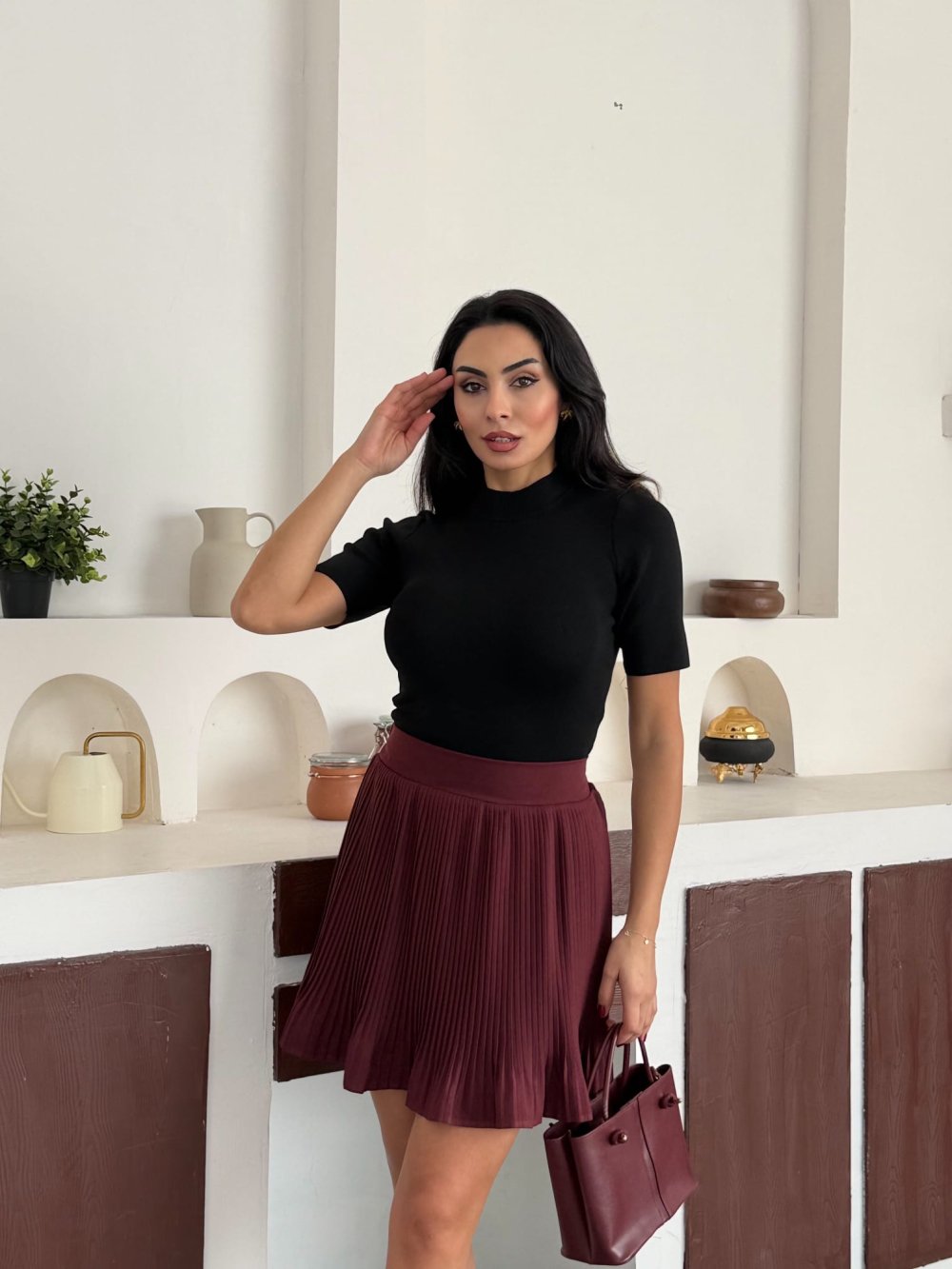 Balıkçı yaka kısa kol triko Siyah