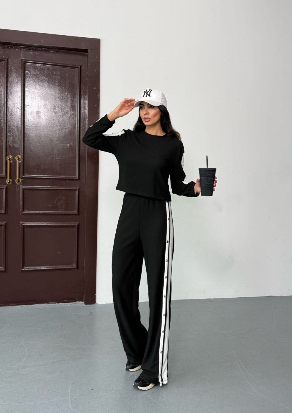 Çıtçıtlı eşofman takımı Siyah